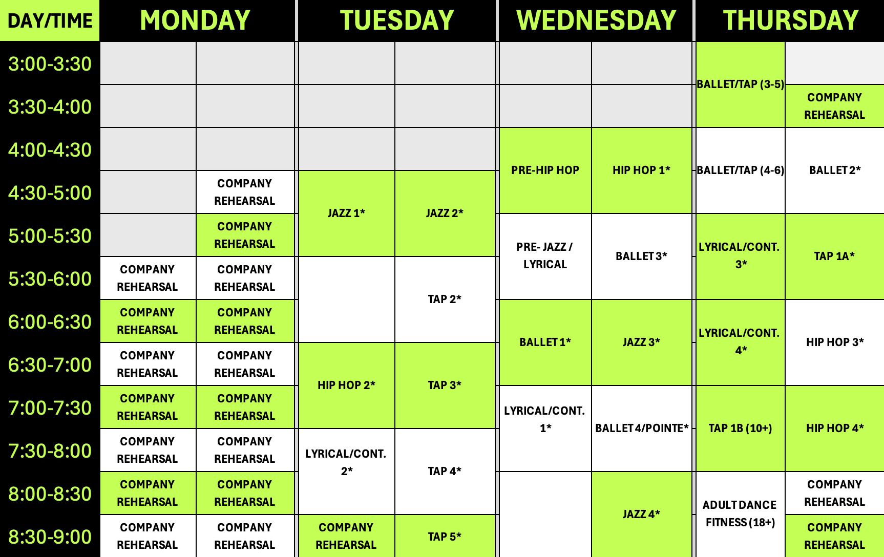 Classes marked with an ‘*’ require placements/approval - please reach out for assistance with class placement.